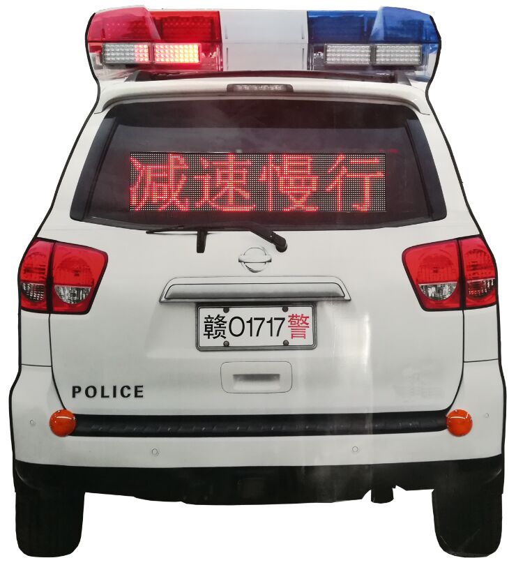 這款“仿真警車(chē)警示裝置”,是參照通用警車(chē)后背視覺(jué)圖樣,采用等比例尺寸噴繪圖案制作成面板,并按照實(shí)物的現(xiàn)狀布局,還配置了“后窗字幕”、“剎車(chē)燈”、“車(chē)頂警燈”等LED發(fā)光裝置,因?yàn)橥ǔTO(shè)置在取電不方便的偏遠(yuǎn)路段,所有設(shè)計(jì)采用太陽(yáng)能供電,不仔細(xì)看就像真警車(chē)一樣,特別是在動(dòng)態(tài)行駛狀態(tài)中,難怪司機(jī)們都以為遇到巡邏警車(chē)了。