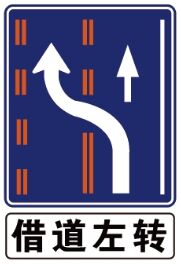 (2)標(biāo)志設(shè)置:借道入口端上游交叉口出口處合適位置,應(yīng)設(shè)置“對(duì)向借道左轉(zhuǎn)”預(yù)告標(biāo)志,版面參考圖 a),并配合可借道的控制時(shí)段輔助說(shuō)明。借道出口段上游合適位置應(yīng)設(shè)置“注意潮汐車(chē)道”警告標(biāo)志。指示標(biāo)志設(shè)置:借道入口端應(yīng)設(shè)置“對(duì)向借道左轉(zhuǎn)”說(shuō)明標(biāo)志,版面參考圖 b),若有條件可采用LED主動(dòng)發(fā)光標(biāo)志或內(nèi)部照明標(biāo)志(全透面板型)。