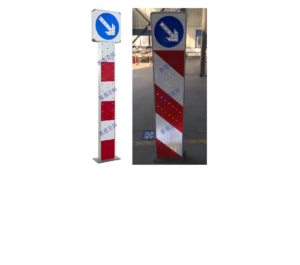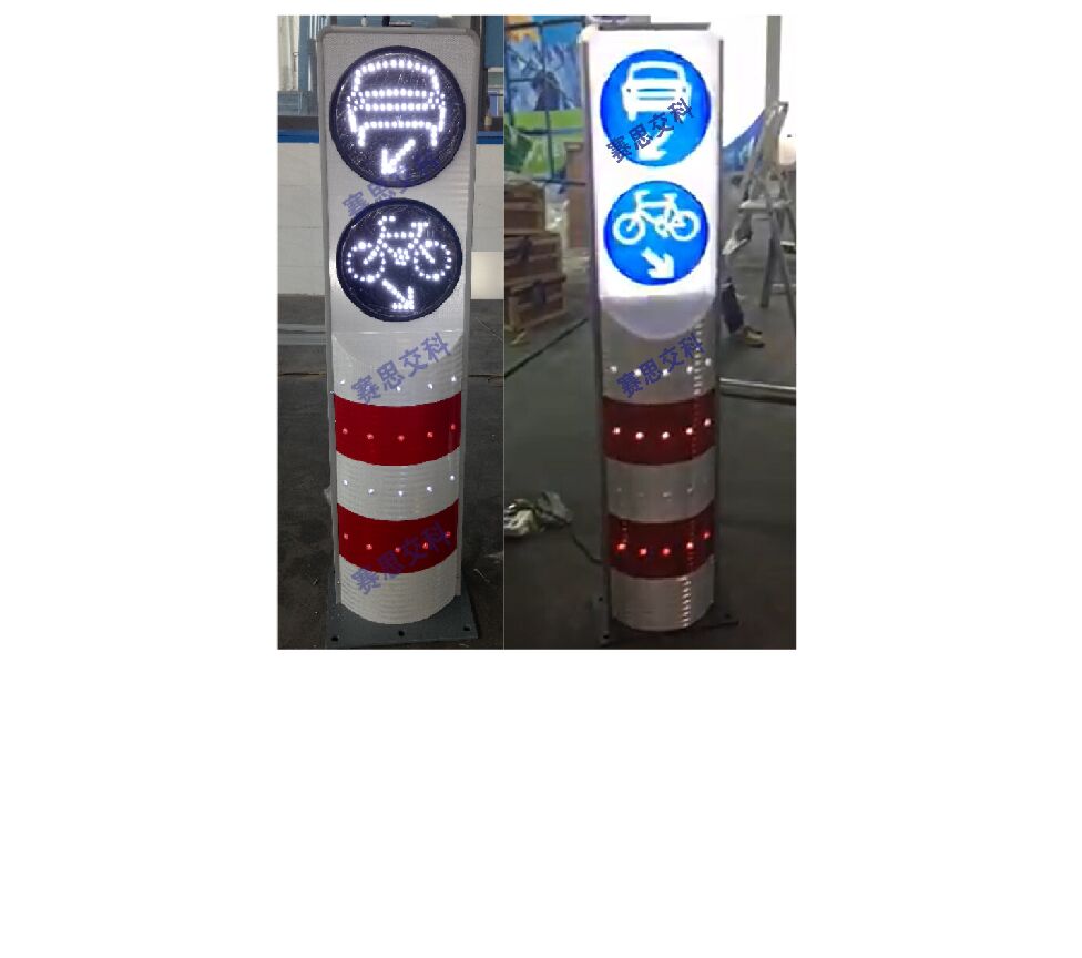 2、基本說明:一體式柱體結(jié)構(gòu),標志版面圖案中設(shè)置紅滿屏燈、紅滿屏燈,交替閃爍,柱體上設(shè)置警示發(fā)光管,采用太陽能蓄電池供電,設(shè)置于危險路段分道、高架匝道上下口等。