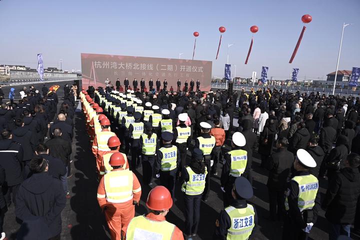 好消息:杭州灣大橋北接線二期于今天上午正式開通,市委書記張兵等出席開通儀式并宣布