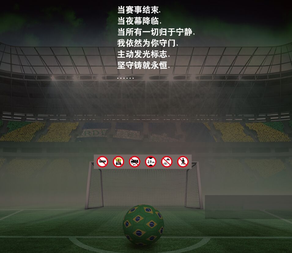 主題:當(dāng)賽事結(jié)束后,球門(mén)仍在那里為你敞開(kāi);當(dāng)夜深后,發(fā)光標(biāo)志仍在默默守護(hù)安全。
