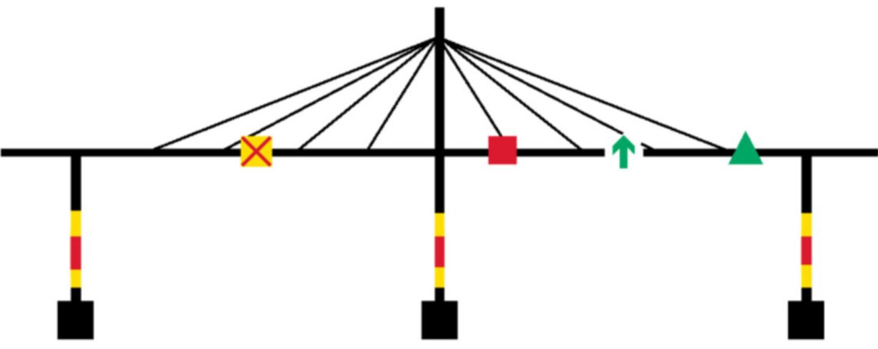 船舶在內(nèi)河或海域中通行,在臨近跨河、跨海橋梁時,需要通過觀察橋梁上的助航標(biāo)志,來判斷橋梁下方的通行航道定位,及時修正航行線路,所以設(shè)置于橋梁上的助航標(biāo)志,對船舶準(zhǔn)確、及時地把握前方橋梁信息顯得尤其重要。橋梁航道助航標(biāo)志通常采用逆反射材料,船舶臨近時需要依賴射燈照射才能認(rèn)知版面信息,在橋梁周圍光照環(huán)境不佳的夜晚或惡劣天氣,普通的反射型標(biāo)志已不能滿足全天候的視認(rèn)需求,現(xiàn)在普遍采用主動發(fā)光標(biāo)志工藝,該標(biāo)志不僅具備主動發(fā)光功能(不需射燈照射),同時兼具逆反射效果,被越來越多地應(yīng)在橋梁航道助航上,極大地增強了助航標(biāo)志的遠(yuǎn)距離視認(rèn)性、警示性、易捕捉性,大大提升了橋梁航道的安全性。