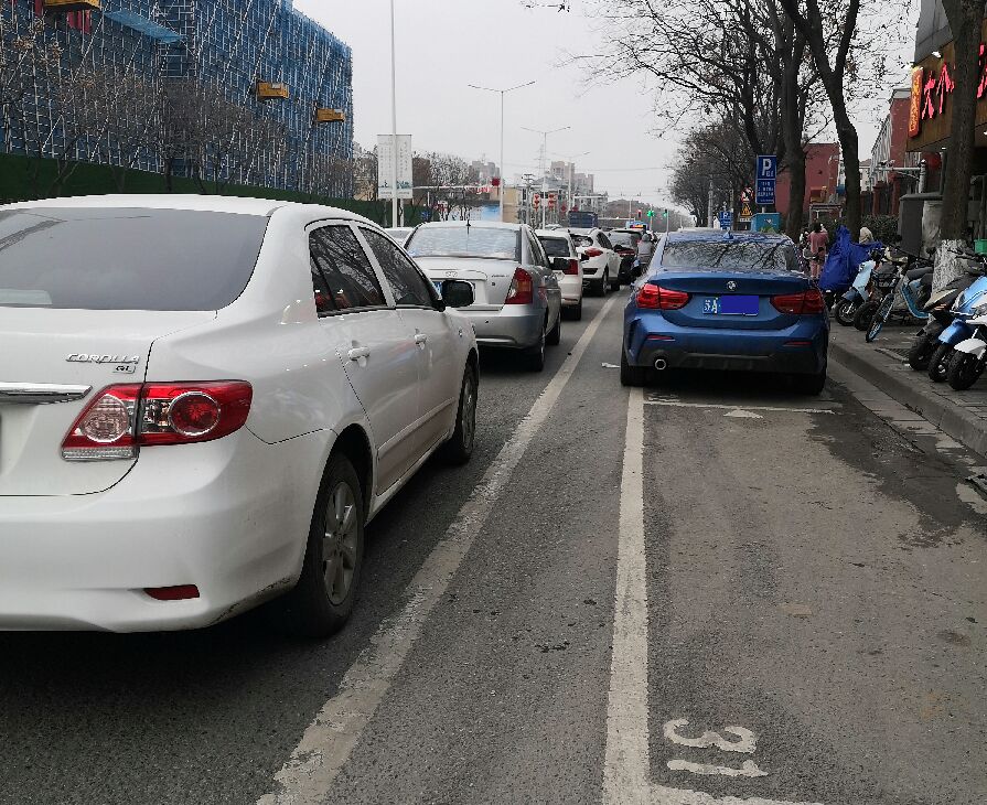 照片所示,拍照點前方約30米位置,是一所小學,正值放學時段,單向三車道的路面,除專用停車泊位外,靠右側一個車道已基本被占停,中間車道的車輛大部也都是來接孩子的,可能是來遲了,靠邊的停車位已無空余,只能時動時停,伺機接上孩子,整個單向道路僅剩中央隔離帶邊一個車道供過境通行,道路通行效率極低。同時,大量接孩子的電動車隨意停放、任意穿插,毫無通行秩序而言,存在極大的交通安全隱患。