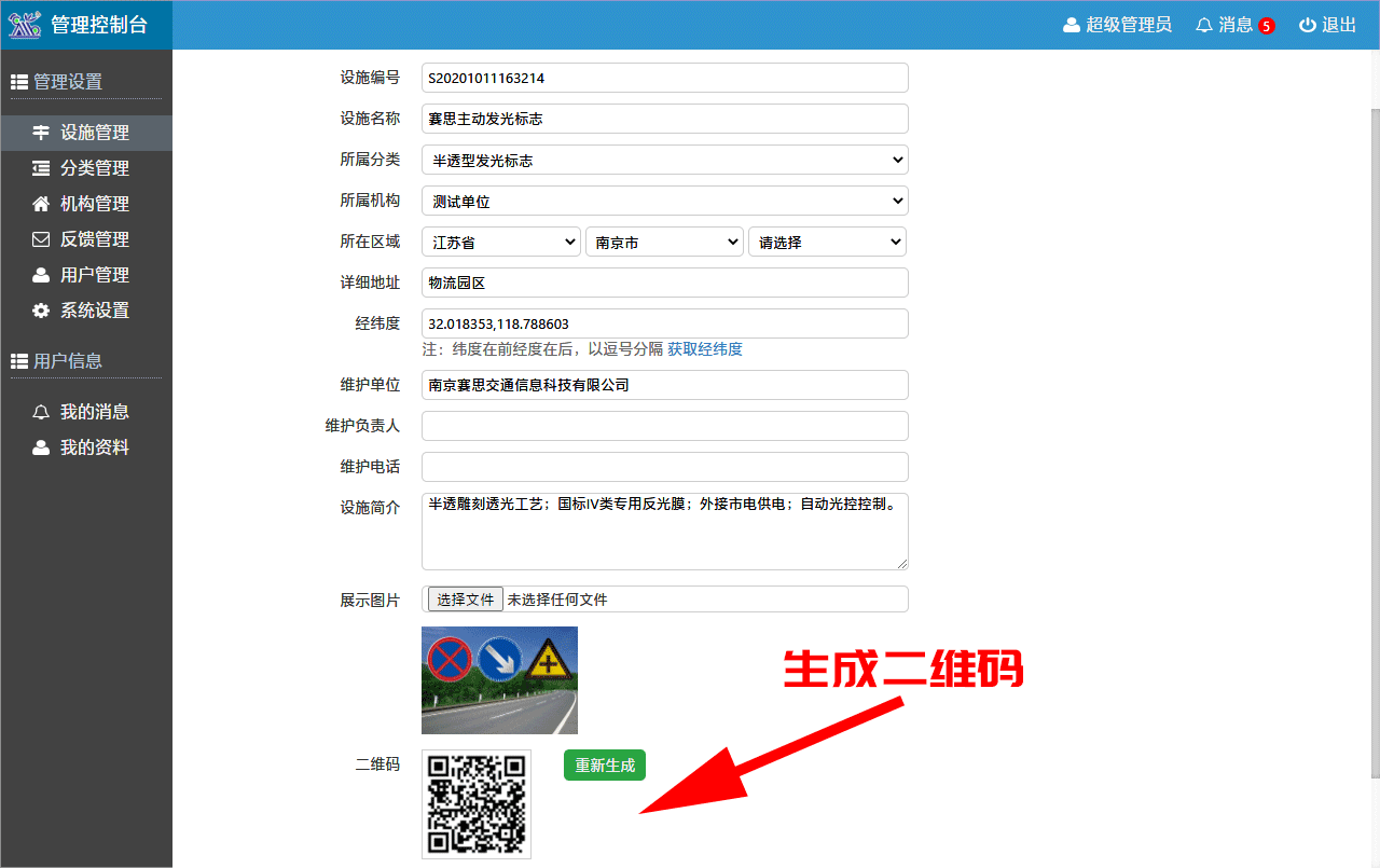 這款設(shè)施管理系統(tǒng),可通過后臺添加修改設(shè)施設(shè)備,并生成對應(yīng)的二維碼。可把二維碼印在分散各地的設(shè)施設(shè)備上,不僅能讓公眾查看設(shè)施設(shè)備的詳情,也能及時反饋故障。比如交通設(shè)施,出現(xiàn)倒塌等問題后,行人可通過掃描二維碼提交故障問題,后臺人員可及時看到實時反饋,安排人員進(jìn)行搶修。