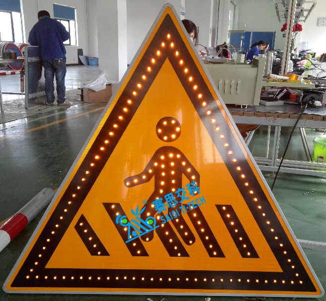 其主要功能:對構(gòu)成農(nóng)村道路安全隱患的危險因素提前預(yù)告,給司機有充足的駕駛決策和避險時間,主要包括:“前方村莊警告標志”、“前方不規(guī)則彎道警告標志”、“前方叉口警告標志”、“前方臨水警告標志”、“前方注意行人警告標志”、“前方坡段警告標志”等。其優(yōu)點:警示效果明顯、捕捉率高、可視距離較遠、價格便宜。更多了解可點擊:《外置點陣型主動發(fā)光標志 led發(fā)光標志》