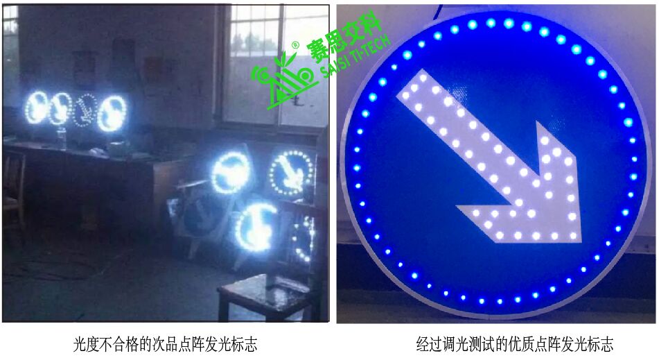 不僅是非生產(chǎn)業(yè)內(nèi)的客戶,甚至有些從事發(fā)光標(biāo)志生產(chǎn)不久的廠家,都想當(dāng)然地認(rèn)為“主動(dòng)發(fā)光標(biāo)志不就是能發(fā)光的標(biāo)志嘛!給標(biāo)志裝上LED發(fā)光管就是發(fā)光標(biāo)志!”,而我要說的是:“led發(fā)光管+標(biāo)志牌 ≠ 主動(dòng)發(fā)光標(biāo)志;能發(fā)光的標(biāo)志,不一定算是主動(dòng)發(fā)光標(biāo)志?。 ?,主動(dòng)發(fā)光標(biāo)志作為重要的交通語言發(fā)光載體,其光源特性,不同于照明功能的路燈,也不同于警示功能的爆閃燈,其屬于光信息功能范疇,其光強(qiáng)要在人眼視認(rèn)的舒適區(qū)間內(nèi),既不能過分追求太亮而刺眼,也不能為節(jié)省能源損耗,而過于偏暗,要達(dá)到版面亮度舒適,讓駕駛員人眼舒適地對(duì)光信息進(jìn)行讀取、辨認(rèn)、識(shí)別、認(rèn)知,其需要根據(jù)具體版面的內(nèi)容特征,和安裝位置的環(huán)境照顧,進(jìn)行調(diào)光測(cè)試給出系列值,并提供動(dòng)態(tài)自動(dòng)修正的功能。不是毫無依據(jù),很隨意地給標(biāo)志安裝上LED發(fā)光管,就可以提供給交通工程應(yīng)用。