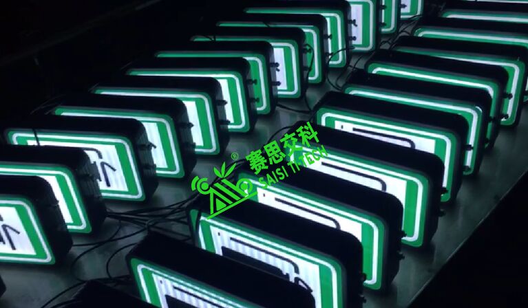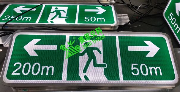 隧道雙面全透電光標(biāo)志,面板采用專用透光材質(zhì);背板采用鋁制板材;抱邊結(jié)構(gòu)采用專用的模具成型鋁制結(jié)構(gòu);面板圖案文字部分,主要分兩種:(1)國標(biāo)IV類反光膜;(2)UV專用圖案打印(不反光)。其安裝通常采用L型支架架構(gòu),側(cè)裝于隧道內(nèi)壁。光源采用專用內(nèi)置照明超亮燈珠,內(nèi)部投射于標(biāo)志表面,形成發(fā)光效果。