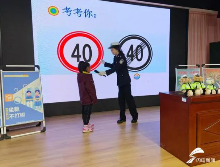 “生動(dòng)活潑,入腦入心”。民警通過(guò)ppt為同學(xué)們介紹了各種常見的交通標(biāo)志、標(biāo)線,例如“一盔一帶”,“安全帶是生命帶”、“細(xì)觀察,不猛跑”等。同時(shí),民警還開展了有獎(jiǎng)互動(dòng),為答對(duì)問(wèn)題的小朋友送上交通安全文創(chuàng)產(chǎn)品。