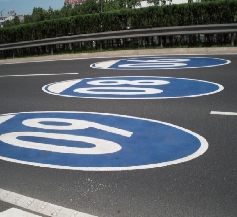 5、建議在進(jìn)入隧道入口通道及前方地面設(shè)置彩色熱熔預(yù)成型落地限速標(biāo)志,落地標(biāo)志上采用圖案和文字提示不同種類的車輛行駛方向,顏色均采用標(biāo)準(zhǔn)的交通色。彩色熱熔預(yù)成型落地標(biāo)志與交通標(biāo)志形成立體的交通指引模式。