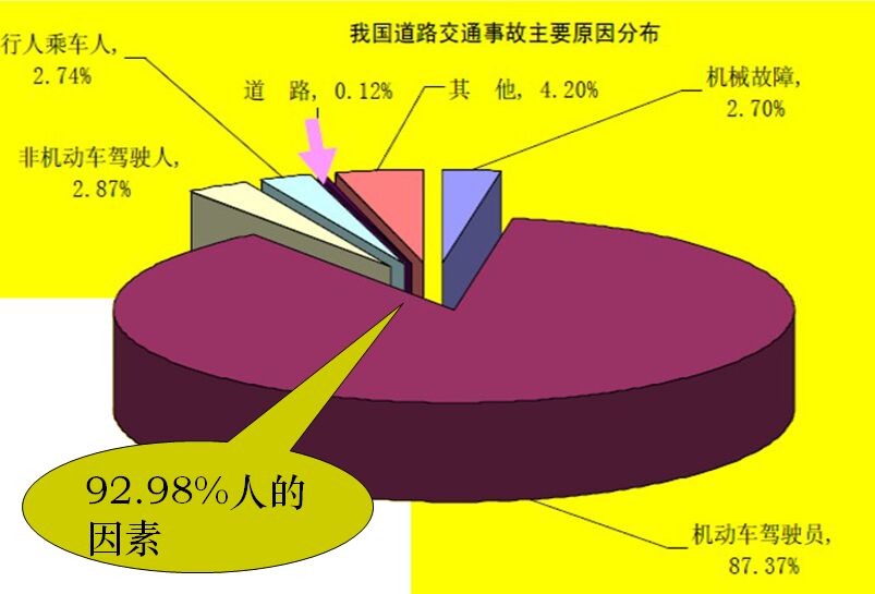 海因里希用多米諾骨牌來形象地描述事故因果的連鎖關(guān)系:在多米諾骨牌系列中,一只骨牌被碰倒了,其余的骨牌將相續(xù)按波的方向被碰到,如果移去其中一只骨牌,則連鎖反應(yīng)被破壞,事故被終止。他的理論人為,防止人的不安全行為,消除非人為因素的不安全狀態(tài),以此中斷事故連鎖進(jìn)程,從而規(guī)避事故發(fā)生。根據(jù)《墨菲定律》的描述,交通要素中一旦有設(shè)計缺陷存在,發(fā)生事故是時間累計后的必然結(jié)果。由于遺傳因素、身體因素、心理因素等多重作用,會對人的判斷力、行動力產(chǎn)生影響,在調(diào)取大量事故資料研究后發(fā)現(xiàn),導(dǎo)致事故發(fā)生的直接原因中,人為因素的影響占據(jù)很大一部分。