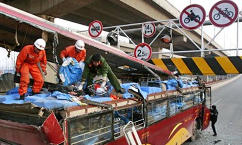 因橋梁限高,或區(qū)域特殊管制需求,各地限高龍門架設(shè)置不在少數(shù),但“限高架削平公交車頂”、“消防車無法通過限高架”等關(guān)鍵搜索短語,隨便在百度上搜索一下,出來的事故照片五花八門。從失效安全設(shè)計理念考慮,部分廠家已研制出彈性限高架,和智能限高架,當(dāng)超高車輛通過限高架時,門架橫檔能柔性偏移,不至于被強(qiáng)行“刮痧”,命懸一線。